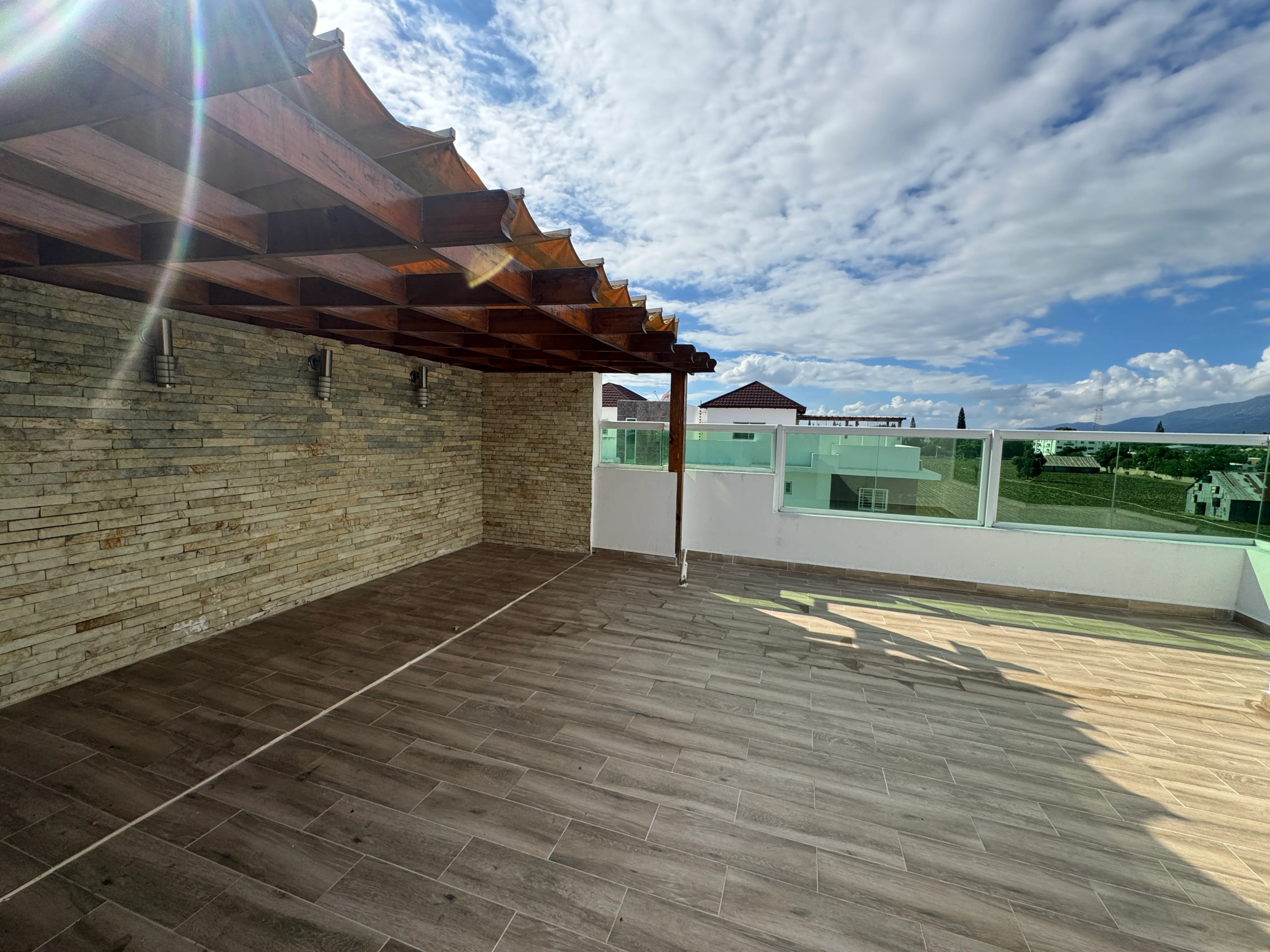 • Terraza exterior con pérgolado en roble y techo retráctil